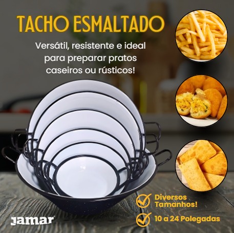 Atenção: cuida de sua peça, não coloque o Tacho vazio no fogo e não use produtos abrasivos na limpeza. Caso o esmalte seja trincado devido a queda, não deve mais ser usado para fins alimentícios.