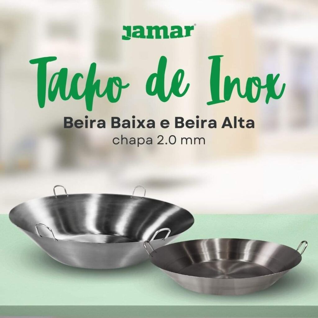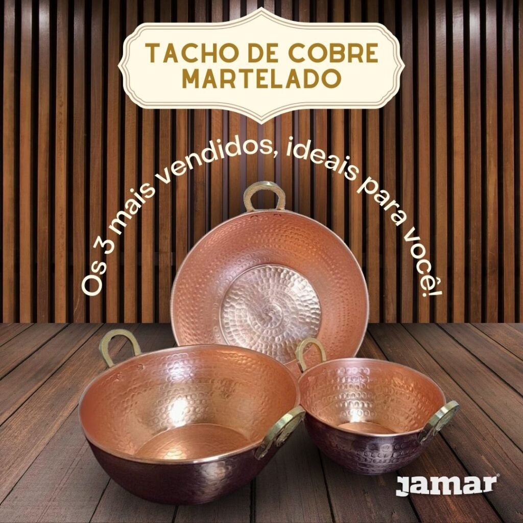 DICAS: 1)Terminado o preparo recomenda-se retirar o alimento da panela (não deixar que a preparação esfrie no recipiente). 2) Após cada uso lave a peça com esponja macia e detergente neutro, jamais use produtos abrasivos ou palha de aço. 3) Para obter um brilho extra limpe o Tacho com limão e sal, após lave com sabão neutro, enxague e deixe secar ao sol de preferencia.