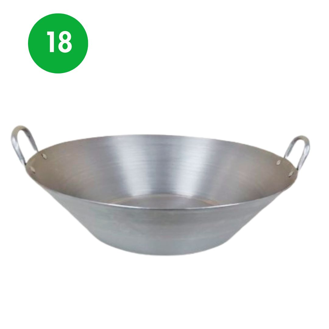 Material: Alumínio 2,5mm (Cor Cinza) Características: Duas alças de tubo de alumínio; Rebites de alumínio; Alças ergonômicas; Ideal para doces. frituras, ensopados, fabricação de sabão e outros.
